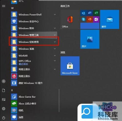 1. 进入到电脑菜单后,点击“windows轻松使用”;