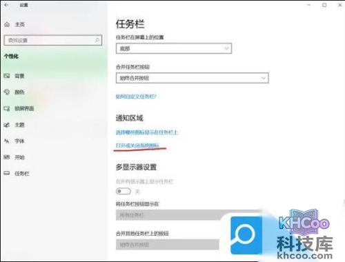 1. 打开“设置”-“个性化”-“任务栏”,找到“打开或关闭系统图标”并打开;