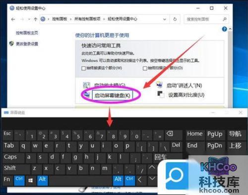 2. 然后在“轻松使用设置中心”窗口里面,点击“启动屏幕键盘”选项即可。
