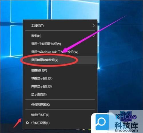2. 在弹出的菜单上面,点击“显示触摸键盘按钮”选项;