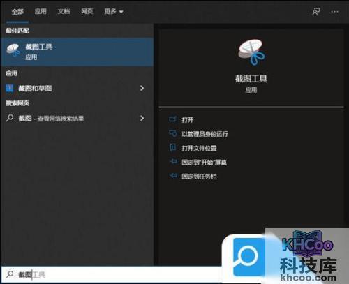 1. 按下快捷键 Ctrl+S 打开Windows 10的搜索界面,并输入“截图”二字,从搜索结果中点击“截图工具”即可进入;