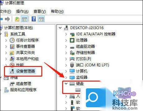3. 在打开的页面上点击左侧的设备管理器,然后再点击右边的键盘;