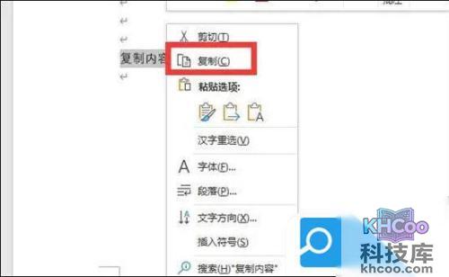 1. 选择需要复制的内容之后,直接按快捷键“Ctrl+C”就可以复制上内容。也可以右击鼠标,点击“复制”选项进行复制内容;