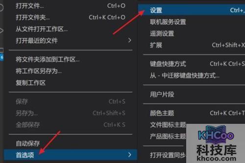 第三步:在下拉子菜单中,依次点击“首选项->设置”项。