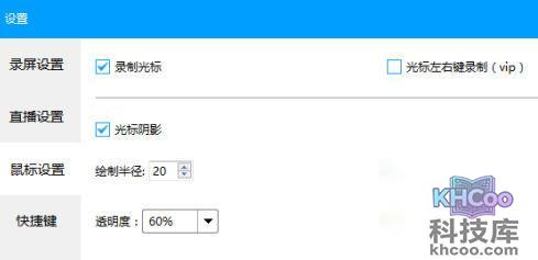 也可以录制鼠标光影,还可以设置颜色,透明度等。