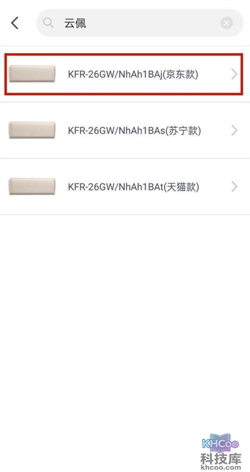3、 搜索 框输入自己的格力空调名称后,选择对应空调类型。