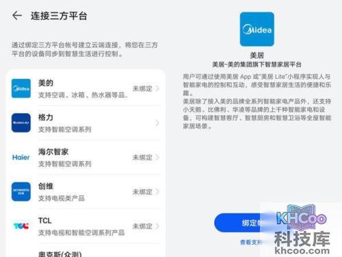 3、点击美的,点击绑定账号,登录账号更具提示操作即可。
