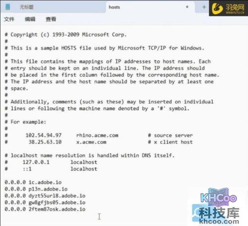 此时 hosts 文件可能是空的也可能有内容这个没关系,我们只需要将上面的代码添加到最后并保存即可,如下图: