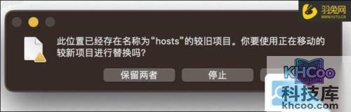 保存好之后我们将桌面上的 hosts文件拖拽回第一步也就是它本来所在的文件夹中: