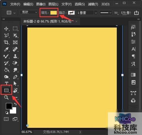 在图片上面,用【 矩形工具 】画出一个矩形,填充为【 #f9d65c 】。