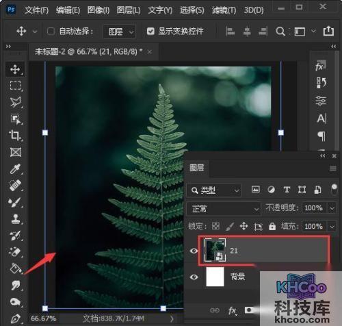 在背景图层上面,拖入一张需要调整颜色饱和度的图片。