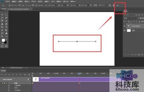 下面,我们移动时间轴的滑块到时间轴后方, 按ctrl+t自由变换文字 ,将文字压缩成一条线,点击确定, 软件自动记录第二个变换点 。
