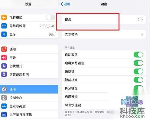 1、打开设置,选择【通用】,点击【键盘】,
