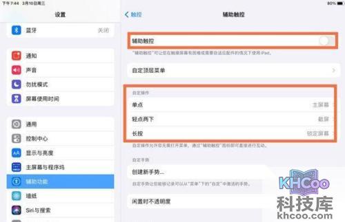 3、打开【辅助触控】,选择一种操作方式。