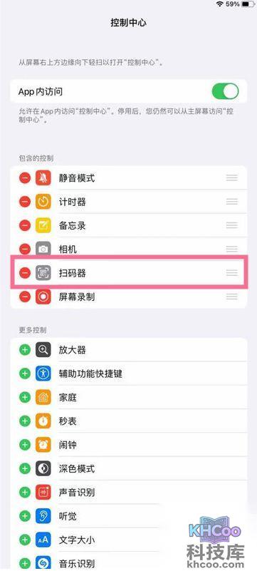 1、从设置菜单中点击控制中心,把扫码器添加到控制中心就可以了。