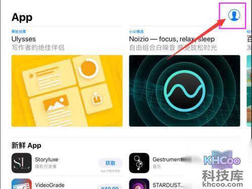 1、从ipad中开启App Store,选择右上角的账户图标。