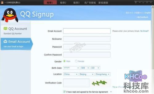 2、qq号码免费申请6位号点击注册账号选项后,随即进入到注册页面。