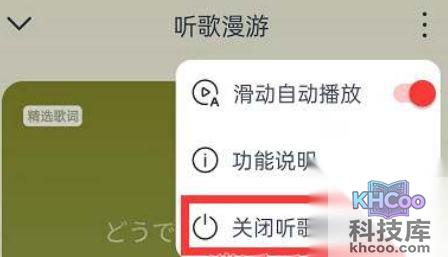 2、还有一种方法是在听歌漫游的播放界面,点击右上角的三个点,在弹出的列表中选择【关闭听歌漫游】并确定。