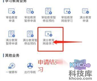5、申请通过后,回到学习教育业务选择最后一个选项【 满分教育网络学习 】,可以开始进行网络学习科目一。