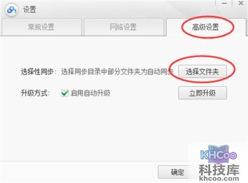 3、在设置界面里,选择第三个 【高级设置】 ,在下面选择性同步中点击 【选择文件夹】 。