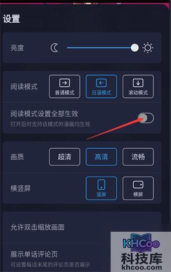 5、最后,设置 【 阅读 模式设置全部生效】 即可提高哔哩哔哩软件漫画的整体亮度。