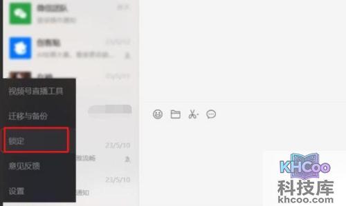 1、打开电脑微信左下角三横线, 点击 锁定。