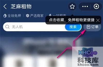 4. 在芝麻租物页面中点击右上方的“订单”按钮。