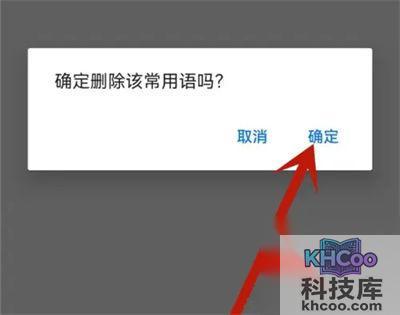 4. 当页面中弹出一个询问是否删除的窗口时,在其中点击“确定”按钮,这个常用语就成功删除掉了。