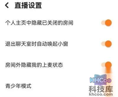 3. 接下来在直播设置的页面里找到“房间外隐藏我的上麦状态“,在它的后面对应着有一个开关按钮,在上面点击把它设置为彩色的状态时即为开启,其他人就看不到你的上麦状态了。