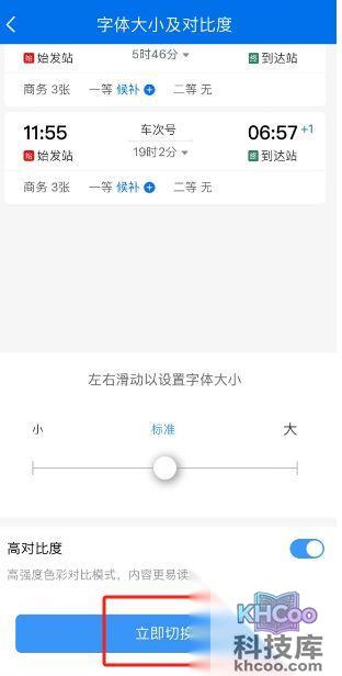 铁路12306怎么调整字体大小及对比度
