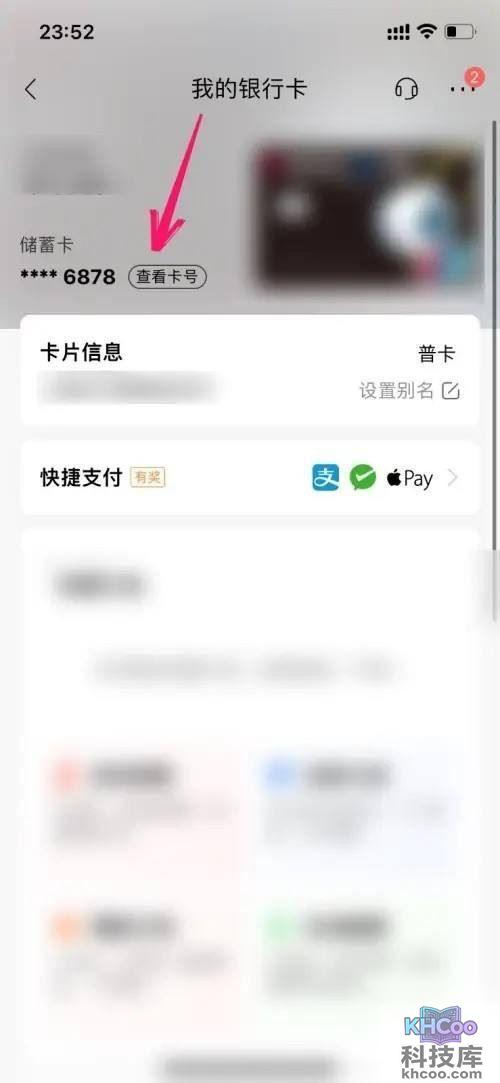 在银行卡页面里 点击 查看卡号。