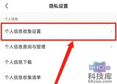 2. 进入隐私设置页面后,在其中找到“个人信息收集设置”,并在上面点击进入。