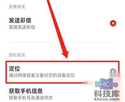 5. 接着在皮皮虾的应用权限页面里找到“定位”功能并在上面点击进入。