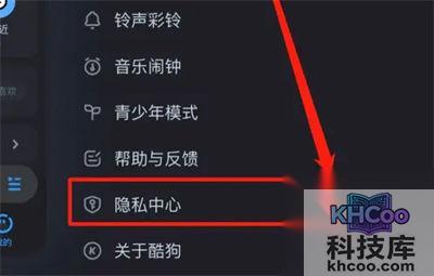 2. 这时在图标下会弹出一个菜单页,在其中下方部分点击选择“隐私中心”这一项进入。