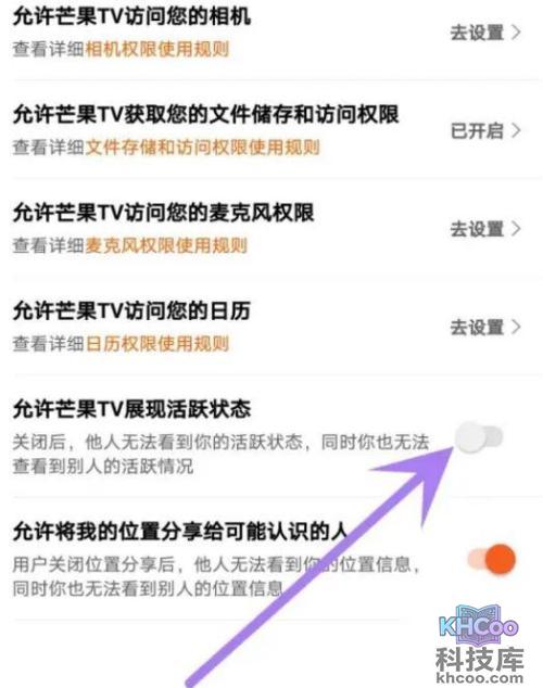 步骤三:找到允许芒果TV展现活跃状态,关闭右侧开关即可。