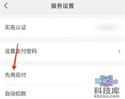 3. 接下来进入到服务设置页面里,在“先用后付”这一项上点击进入。