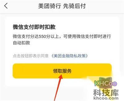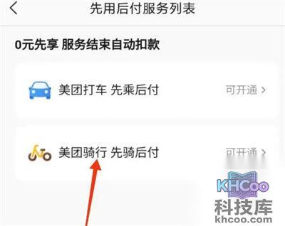 4. 页面跳转至先用后付服务列表后,在其中点击“美团骑行先骑后付”这一项进入。
