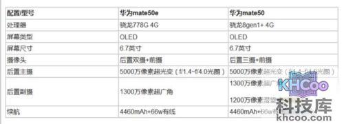 2、华为mate50使用的 骁龙8+ 处理器,性能上要远优于mate50e的 骁龙778G 。
