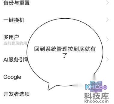 5、进入开发者模式以后,再返回系统管理,往下滑动到底部找到“开发者选项”