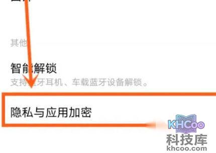 3、接着点击“ 隐私与应用加密 ”。