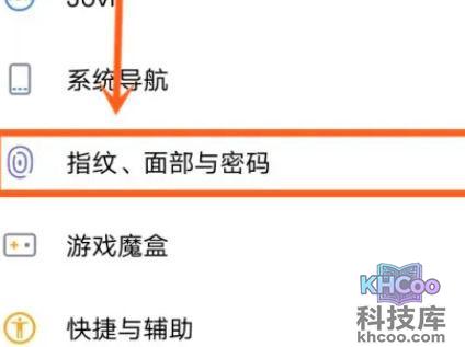 2、然后点击“ 指纹面部与密码 ”。