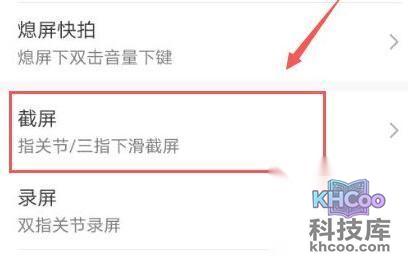 3、再点击“截屏”,把指关节截屏打开就可以了。