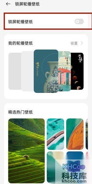 4、看到锁屏轮播壁纸这个按钮,将他点成开启状态即可。
