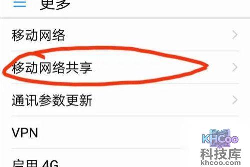 3、再点击“移动网络共享”