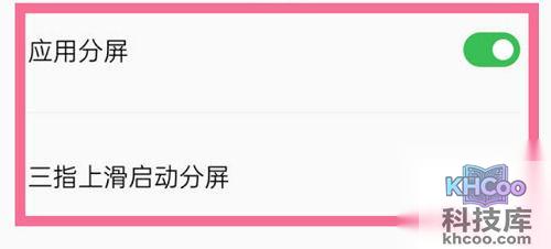 2、然后把“ 应用分屏 ”和“ 三指上滑分屏 ”都打开,这样可以用 三指上滑 来分屏。