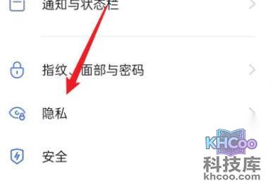 2、然后点击“ 隐私 ”。