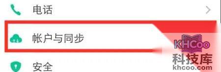 2、进入手机设置页面后,点击账户和同步