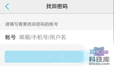 5、在" 找回密码 "页面填写要找回密码的账号,然后点" 下一步“