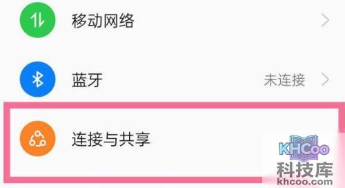 1、进入设置菜单,选择“ 连接与共享 ”。