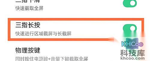 4、进入后,将“ 三指长按截屏 ”的开关打开。